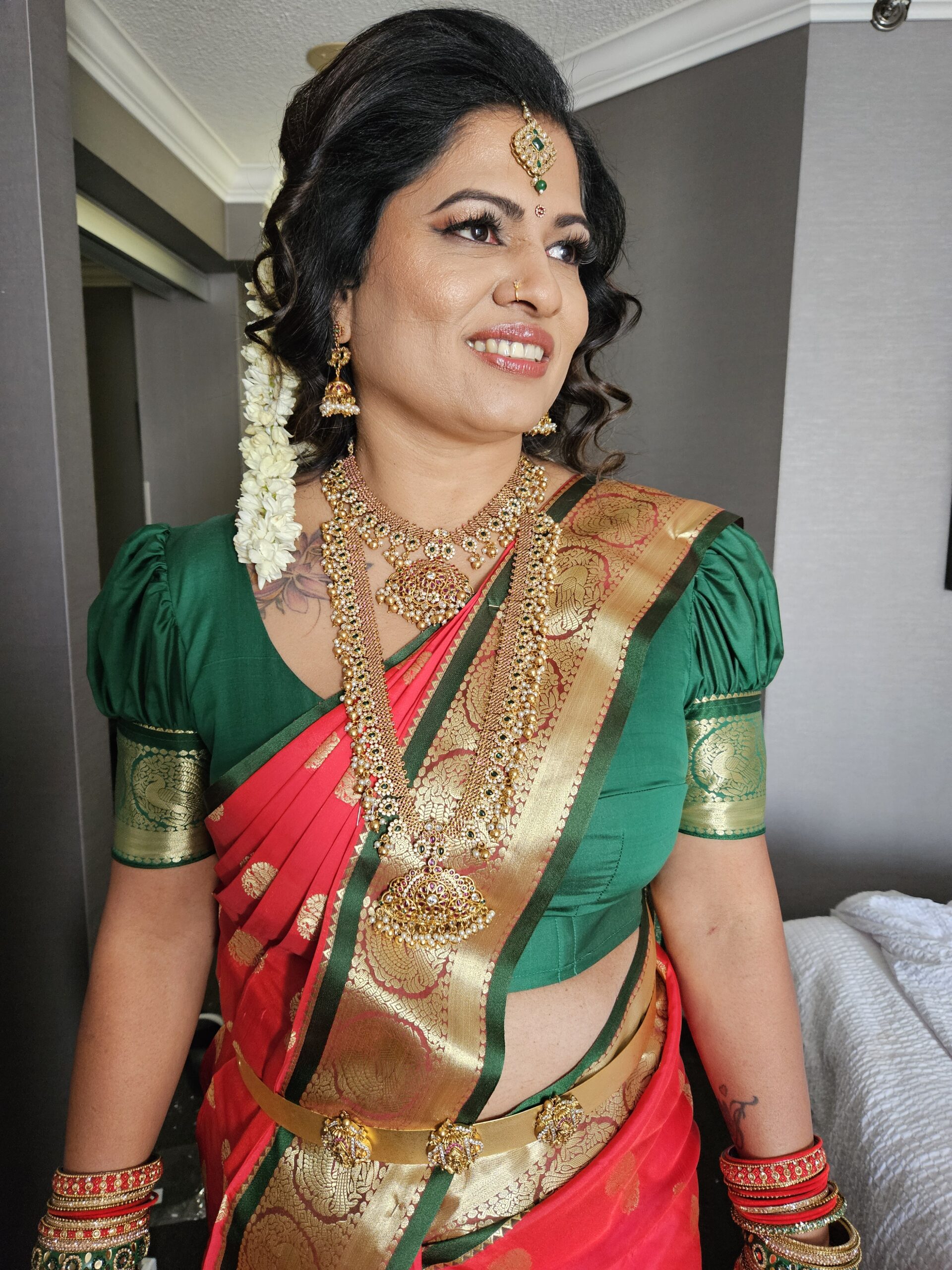 Focus on enhancing your natural beauty for weddings, photoshoots, and special events. Our services include bridal and non-bridal makeup and hair, bridal consults and trials, saree draping, jewelry rentals, and bridal bouquets.